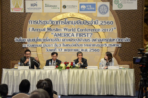 ขอขอบคุณ พลเอก เอกชัย ศรีวิลาศ ผู้อำนวยการสำนักสันติวิธีและธรรมาภิบาล สถาบันพระปกเกล้า ที่ได้ให้เกียรติกล่าวปาฐกนำและให้ข้อคิดที่เป็นประโยชน์ ศาสตราจารย์ ดร.วรเวศม์ สุวรรณระดา คณบดีคณะเศรษฐศาสตร์ จุฬาลงกรณืมหาวิทยาลัย ที่ได้กรุณาให้การสนับสนุนและให้เกียรติมาร่วมประชุมวิชาการนี้ วิทยากร นักวิชาการ ผู้นำเสนอผลงานวิชาการ และผู้เข้าร่วมการประชุมทุกท่าน ที่มีส่วนร่วมสำคัญในความสำเร็จในการจัดกิจกรรมของศูนย์นโยบายโลกมุสลิมครั้งนี้ เช่นเดียวกับทุกๆ ครั้งในหลายปีที่ผ่านมา และโดยเฉพาะอย่างยิ่งกระทรวงการต่างประเทศ ธนาคารอิสลามแห่งประเทศไทย สำนักงานกองทุนสนับสุนนการวิจัย (สกว.) บริษัท อะมานะฮ์ ลิสซิ่ง จำกัด(มหาชน) บริษัท เคทีบี ซีเควริตี้ประเทศไทย จำกัด (มหาชน) บริษัท กรุงไทยพานิชประกันภัยจำกัด (มหาชน) และแผนงานสร้างสุขมุสลิมไทย (สสม.) สำนักงานกองทุนสนับสนุนการสร้างเสริมสุขภาพ (สสส.) ที่ได้ให้การสนับสนุนการจัดการประชุมวิชาการโลกมุสลิมมาโดยตลอด